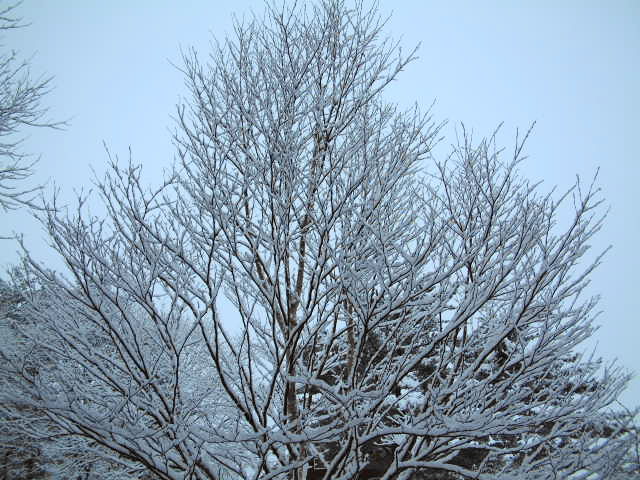 ダケカンバの枝を雪がついて綺麗です。いよいよ冬本番の景色。