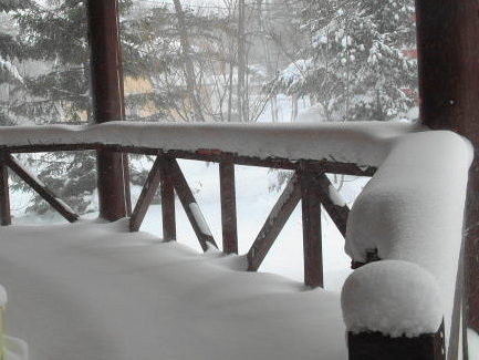 駐車場の雪かきが手一杯で、裏のベランダが手付かず!!