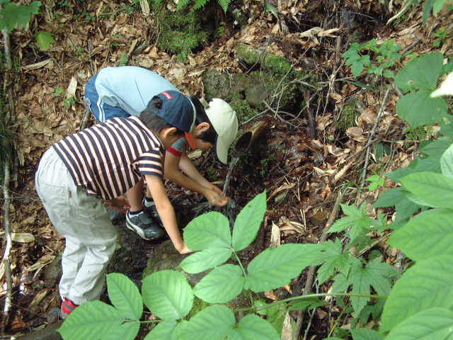 登山道の入り口の川を渡って行く、小さな湧き水。冷たい!!