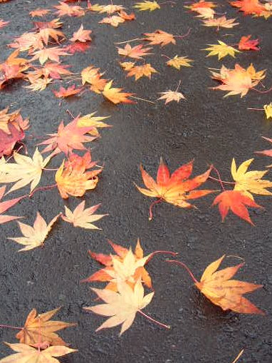 楓の見事な紅葉も、次の風でたくさんの落ち葉になりそうです。