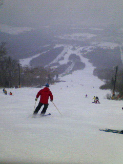 でも、コースの雪はマズマズ、少し固めのバーンで板の滑りはOK。