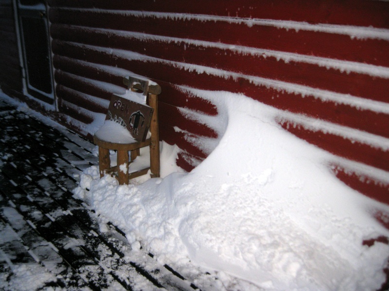 除雪用の道具を片付けて、ベランダに椅子をだして