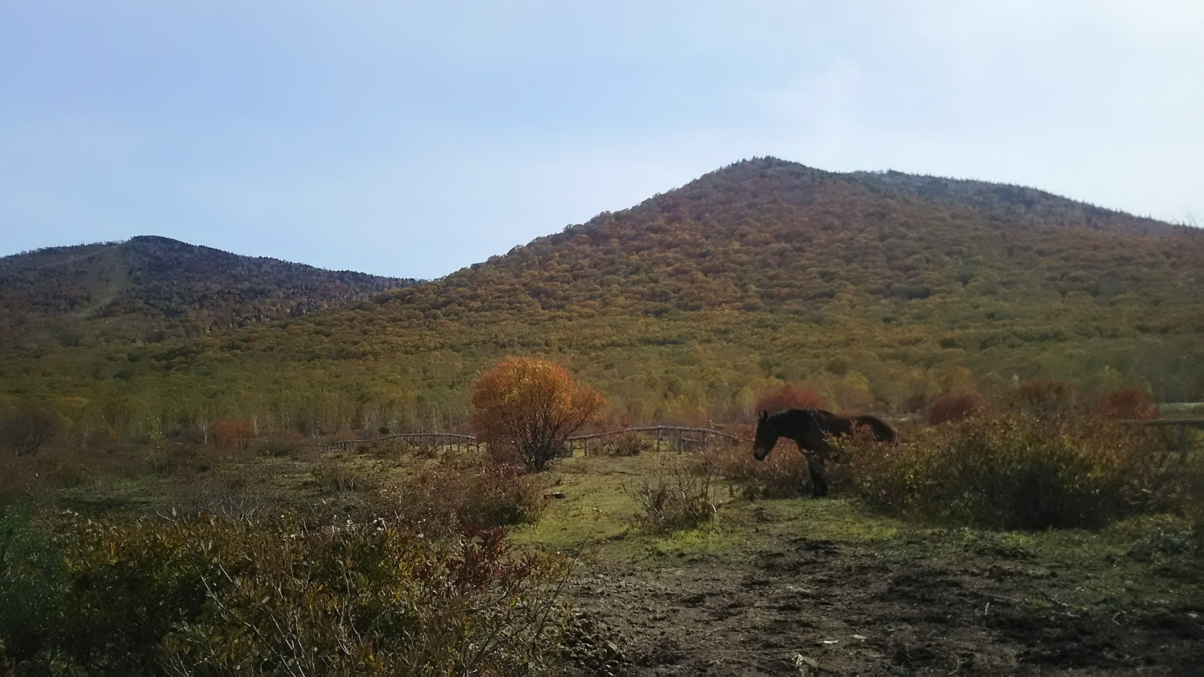 穏やかな秋晴れ、中のまきばの紅葉が良い感じです。