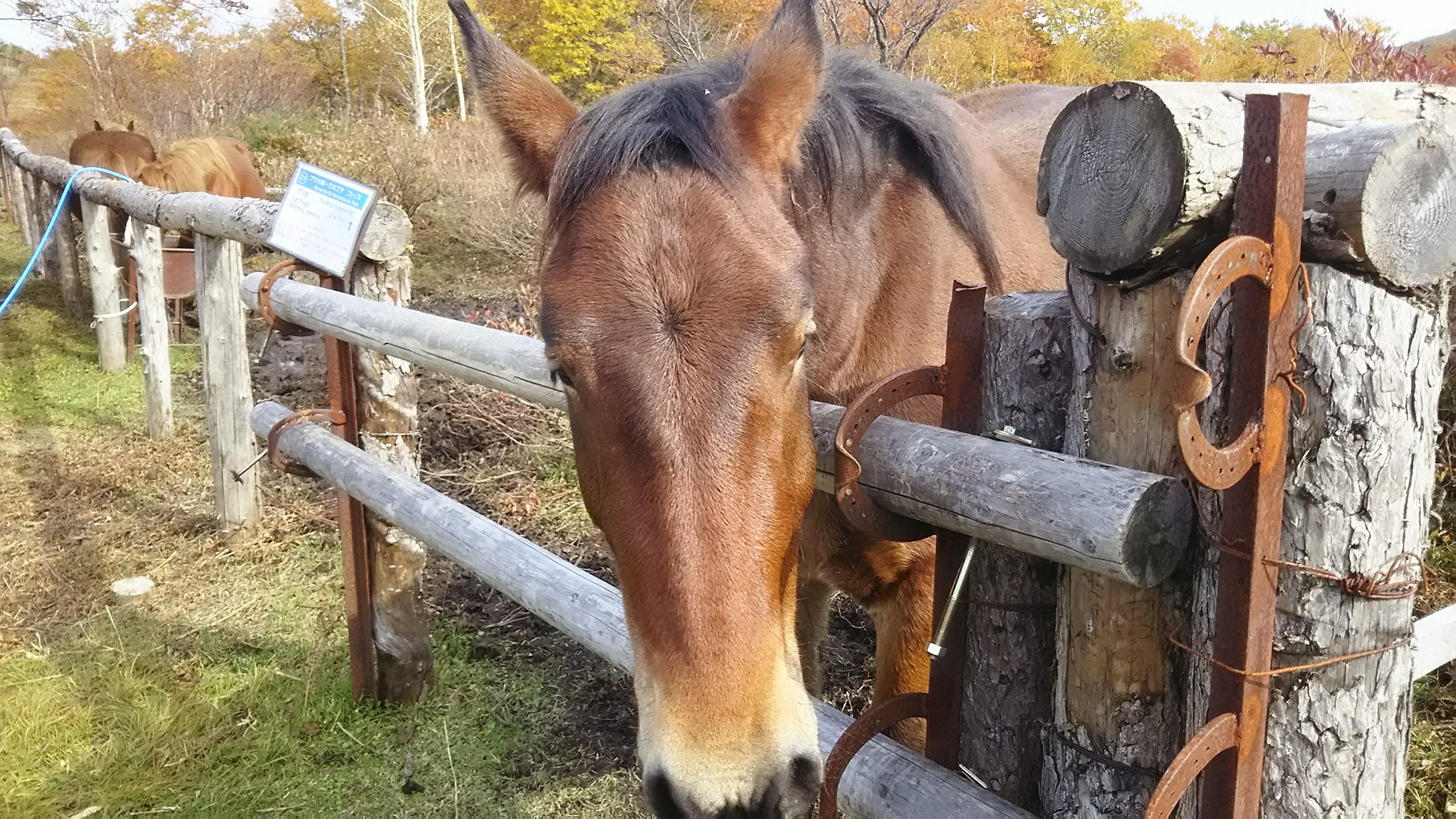 放牧の馬も穏やかな日差しに、のんびりムード。