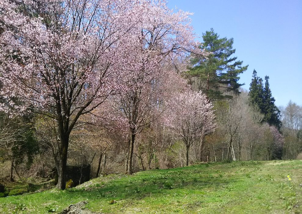 長者屋敷清水の、ソメイヨシノと山桜が見頃