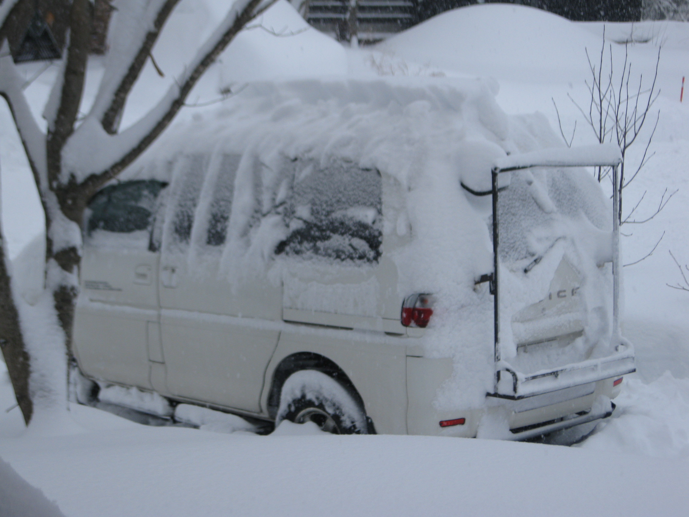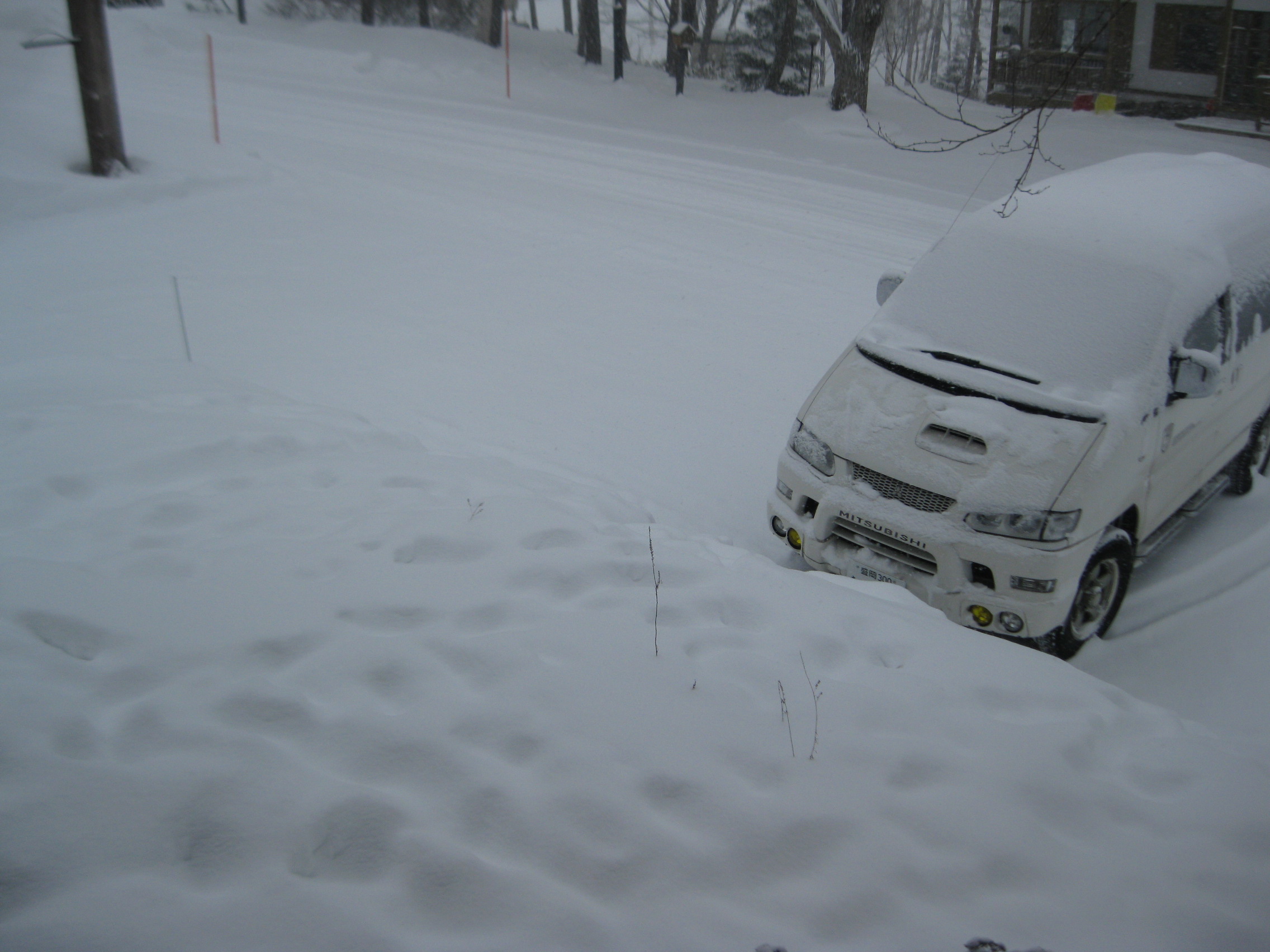 今朝は、車がすっぽりと隠れるような積もり方