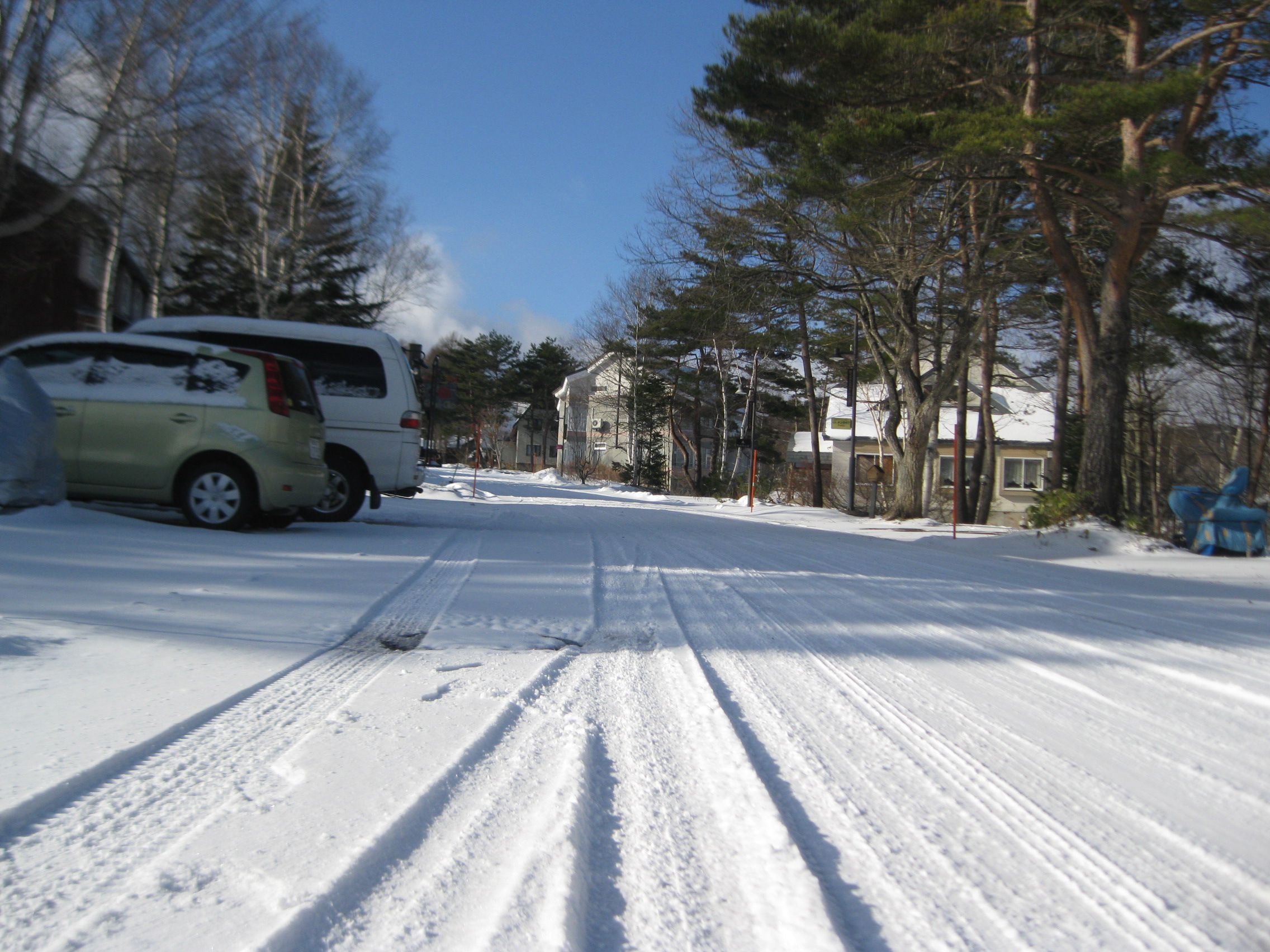 ゲレンデコースは、クッキリと根雪になっています。