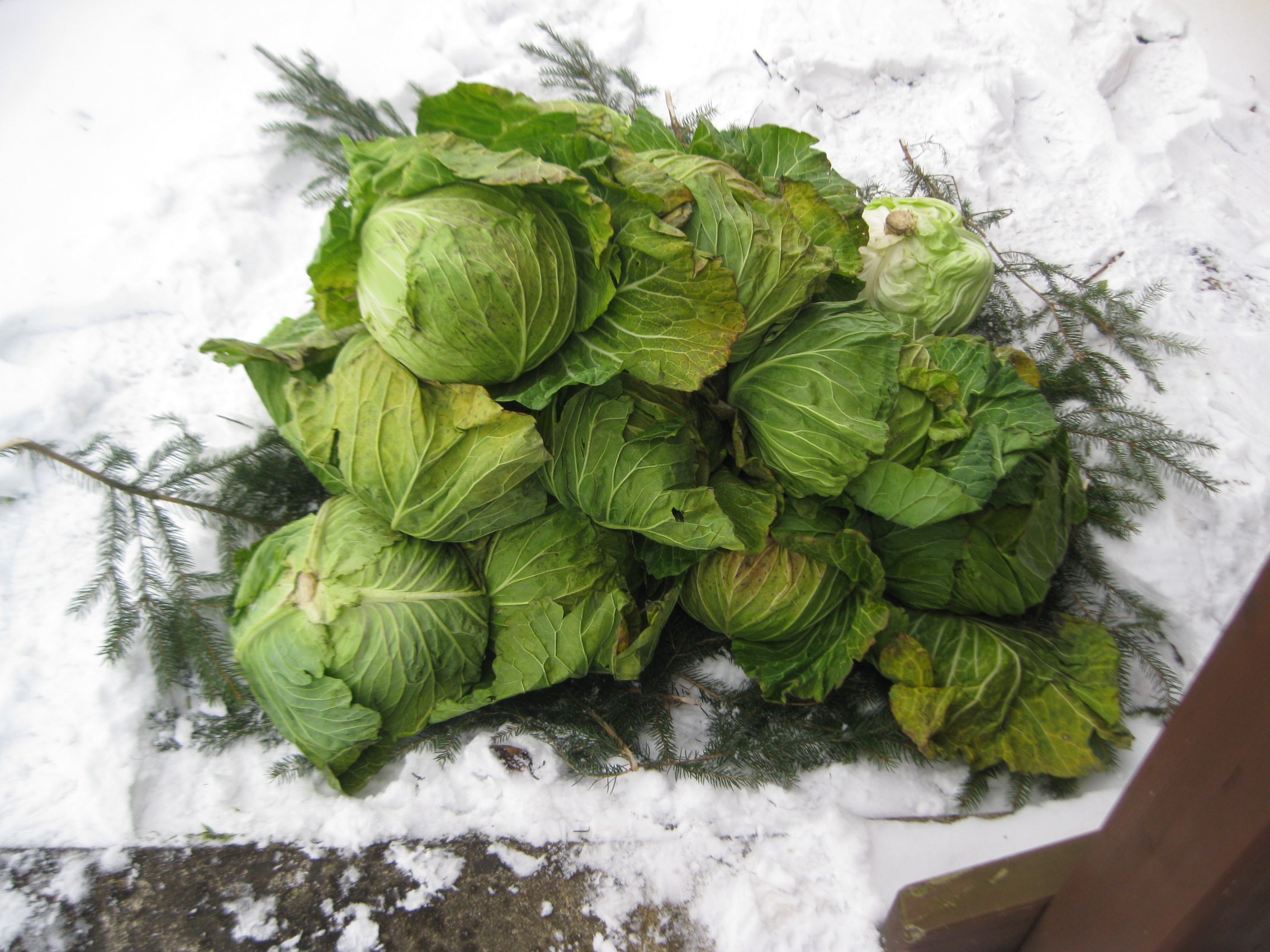 雪を集めてキャベツを埋めました。