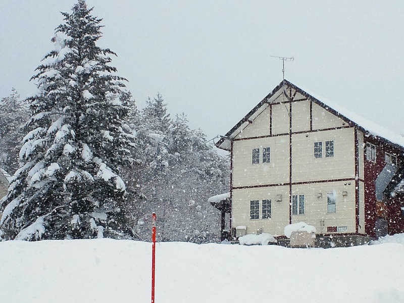 雨予報だったのが、ボサボサの牡丹雪がどんどん降っています。