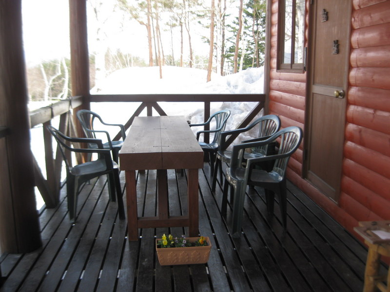 ベランダも春バージョン。雪見で珈琲ブレイク