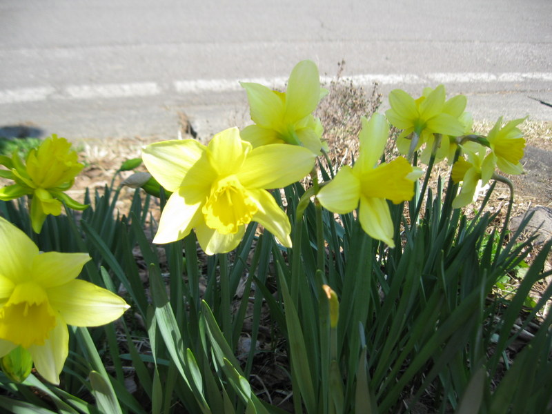 大看板の下の水仙は、今年も一番に花を咲かせてくれています。
