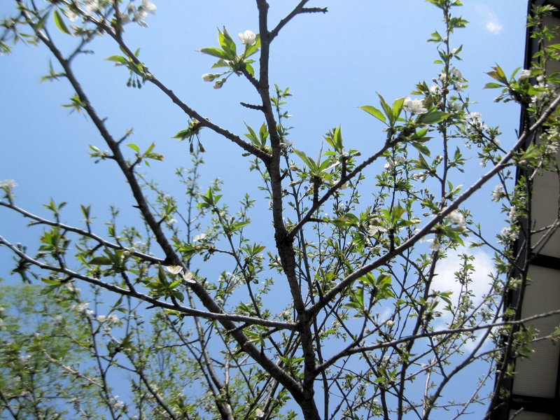 チラホラとかわいらしく・・・何粒さくらんぼの実がなるかな・・・