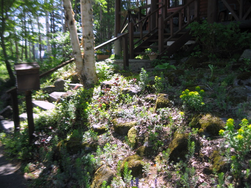 駐車場も乾き、ロックガーデンが少しずつ見え始めています。