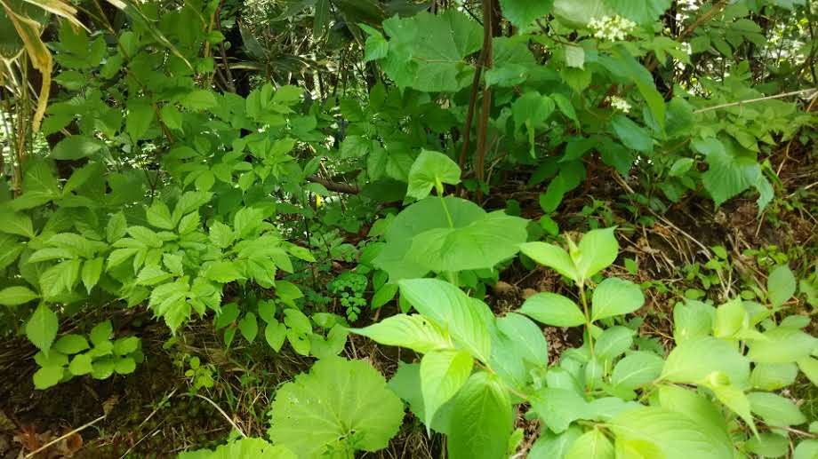 緑の中に目指すのは、ボンナ(ヨブスマソウ)ワラビ、ウド、ソデコ、フキ・・