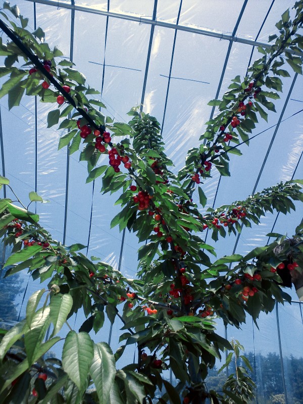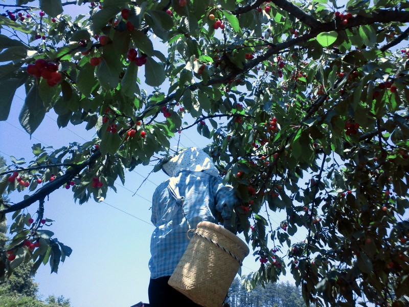 おばさんか一人で切り盛りしているサクランボの圃場は、今が収穫の盛り。