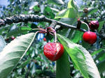 3つだけ実った我が家のサクランボは、鳥に先を越され・・・