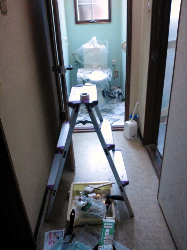 先週は、プライベートの洗面とトイレの天井と壁を塗りなおしました。