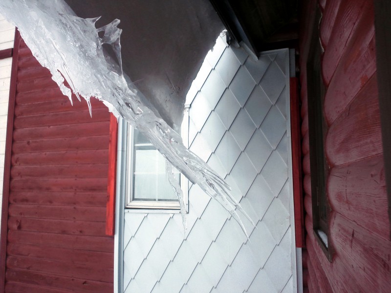 玄関上の大屋根サイドのツララが延びてきました。