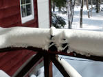ベランダの手すりに設置してある、電車のレールもすっかり雪の下。