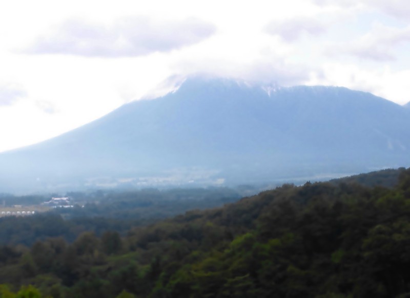 雲の切れ目から、少し早目の岩手山初冠雪。