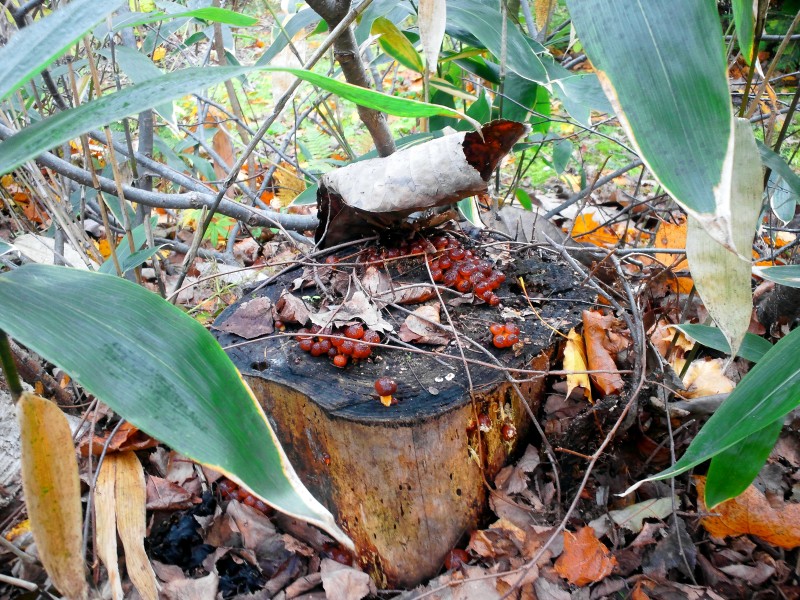 裏庭の切り株に、なめこ発見!!
