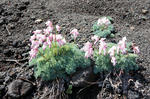 薄緑の光るような葉にピンクの可憐な花、コマクサです。