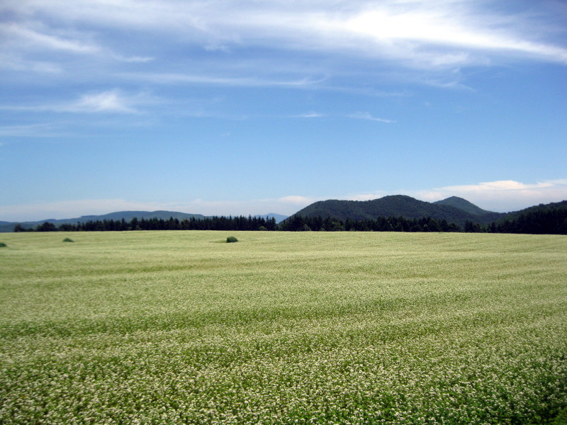 国道282号線から安比への登り口、左右に広がるそば畑は、秋口まで順繰りに