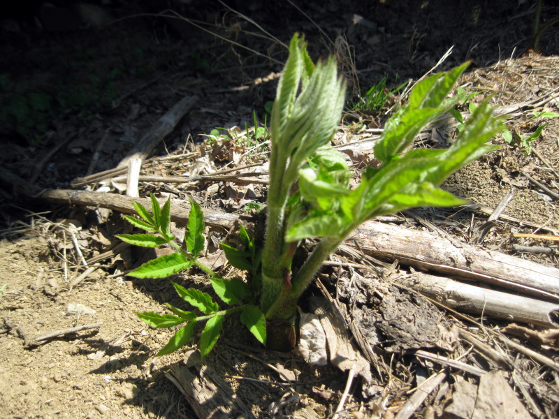 日当たりの良い所は、カラマツの芽吹きも始まっています。