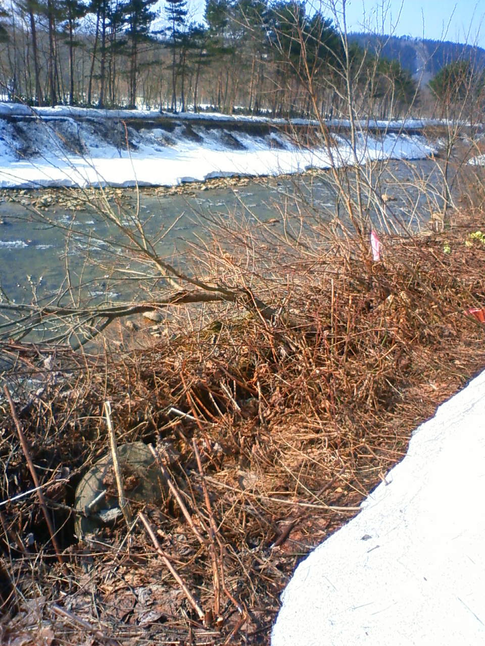 安比川の川沿いもだいぶ雪どけが進んで、ネコヤナギの芽が銀色に光っています。