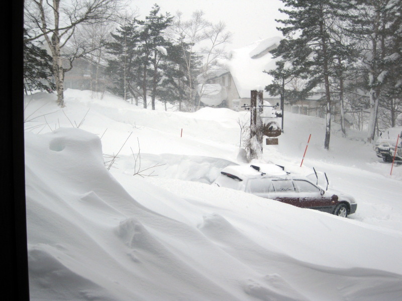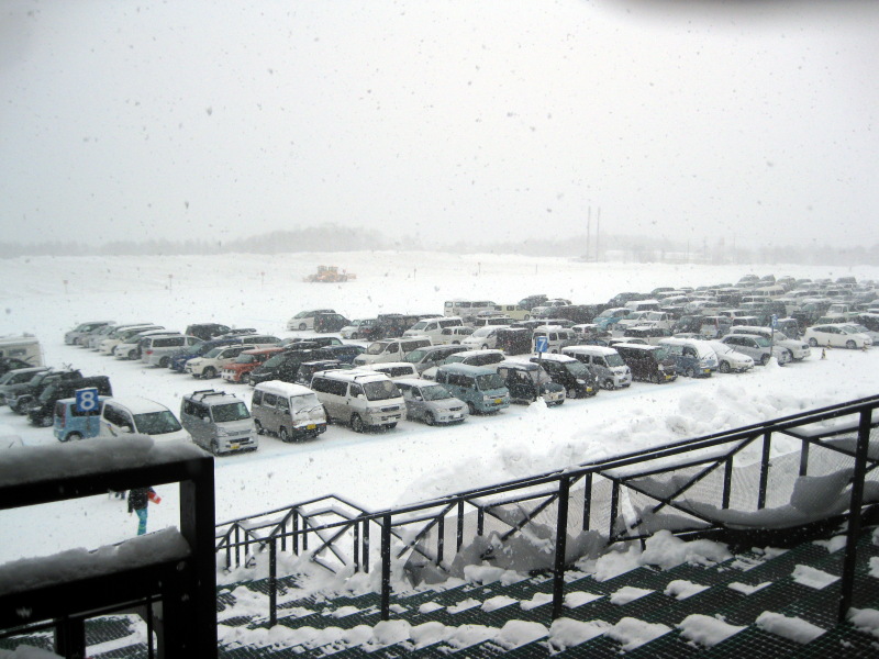 駐車場の車が埋もれ、ゲレンデも圧雪が間に合わず・・・
